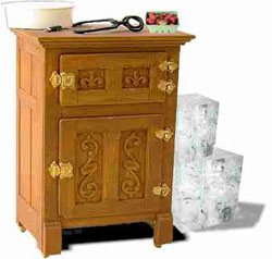 The ice box was a simple device, like a large ice cooler … an early kitchen appliance that used blocks of melting ice to keep food cold.